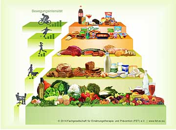 Bildunterschrift: Die FET-Ernährungspyramide veranschaulicht, was ausgewogene Ernährung genau bedeutet.