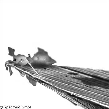 Bildunterschrift: Pen-Nadel nach mehrfachem Gebrauch mit teilweise anhaftenden Geweberesten.