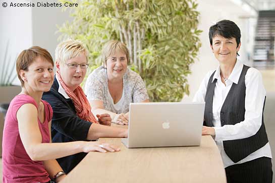 Bildunterschrift: Gemeinsam mit ihren 20 Kollegen und Kolleginnen des Ascensia Diabetes Service unterstützt Karin Christofori (r.) Tag für